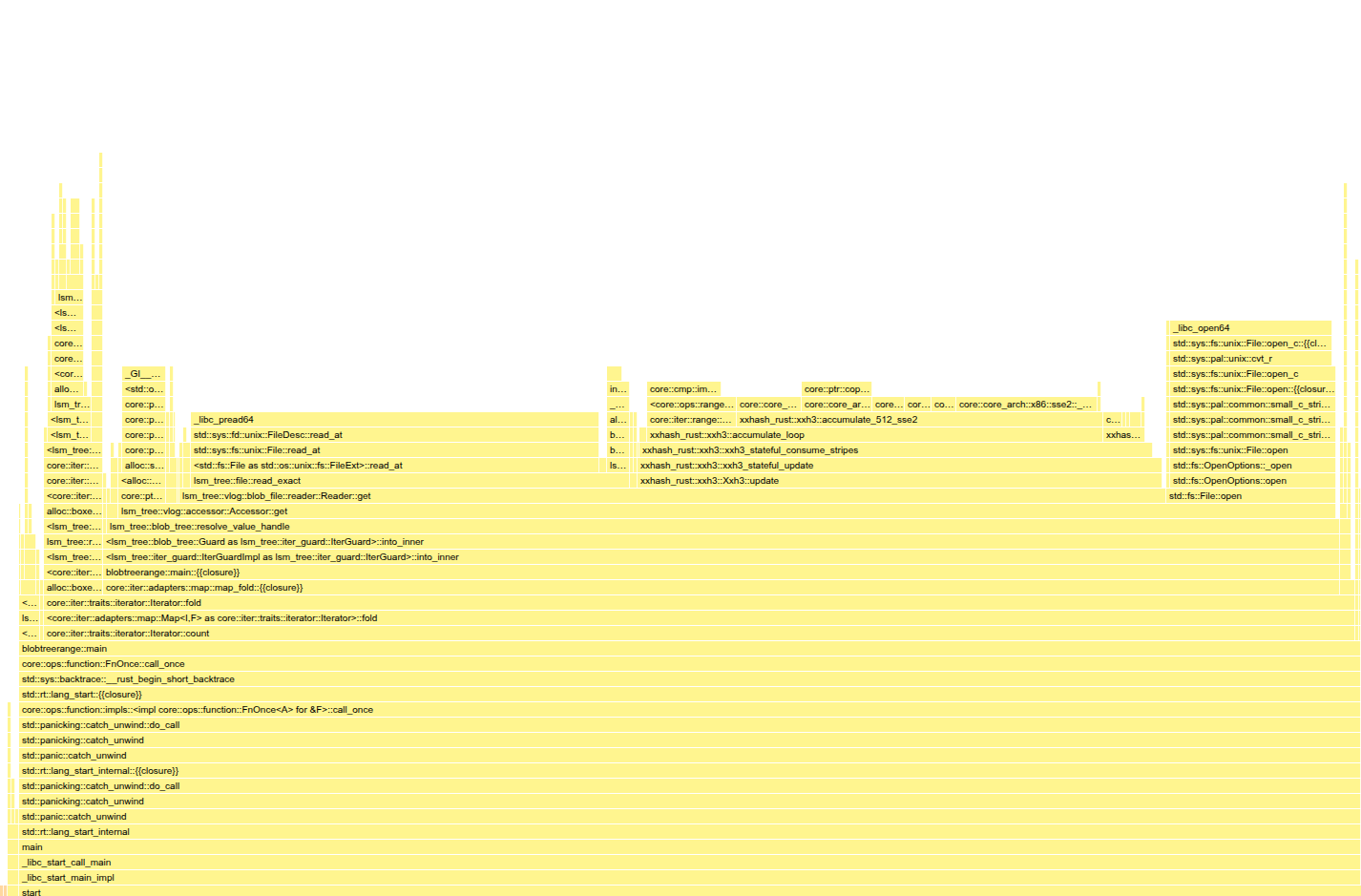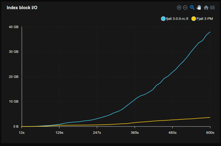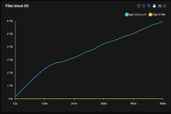 Now that each block has become a single allocation, does that mean the optimizations in 2.6 have become more or less nullified? When it comes to memory usage, for the most part, yes. Because allocations are now always very large (uncompressed blocks are typically 4 - 64 KiB), the relative overhead of an allocation is very small. However, we still take advantage of the fact byteview allows us to allocate a reference-counted, non-zeroed buffer in one allocation; both to make block loads faster (by not zeroing the buffer, which can only be done using unsafe code), and have the possibility to return a subslice without additional heap allocation (only a single atomic FAA).